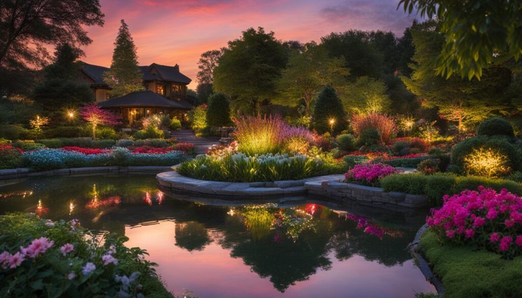 Die Beleuchtung ist das Herzstück der Gestaltung eines Gartenteiches. Sie kann den gesamten Bereich in ein atemberaubendes Licht tauchen und eine magische Atmosphäre schaffen. Durch den Einsatz von schwimmenden Kerzen oder LED-Lichtern können verschiedene Effekte erzielt werden. Schwimmkerzen verleihen dem Teich eine romantische und gemütliche Atmosphäre, während LED-Lichter für zusätzliche Farben und Beleuchtungsmuster sorgen können. Es ist wichtig, die Beleuchtung sorgfältig zu planen und die richtigen Akzente zu setzen, um den gewünschten Effekt zu erzielen.